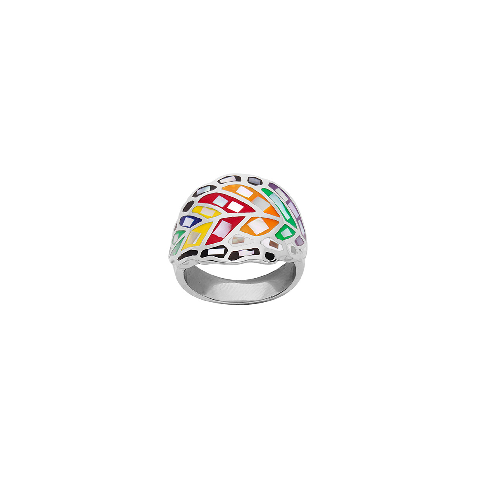 Bague motif feuille en acier, résine et nacre, taille 57