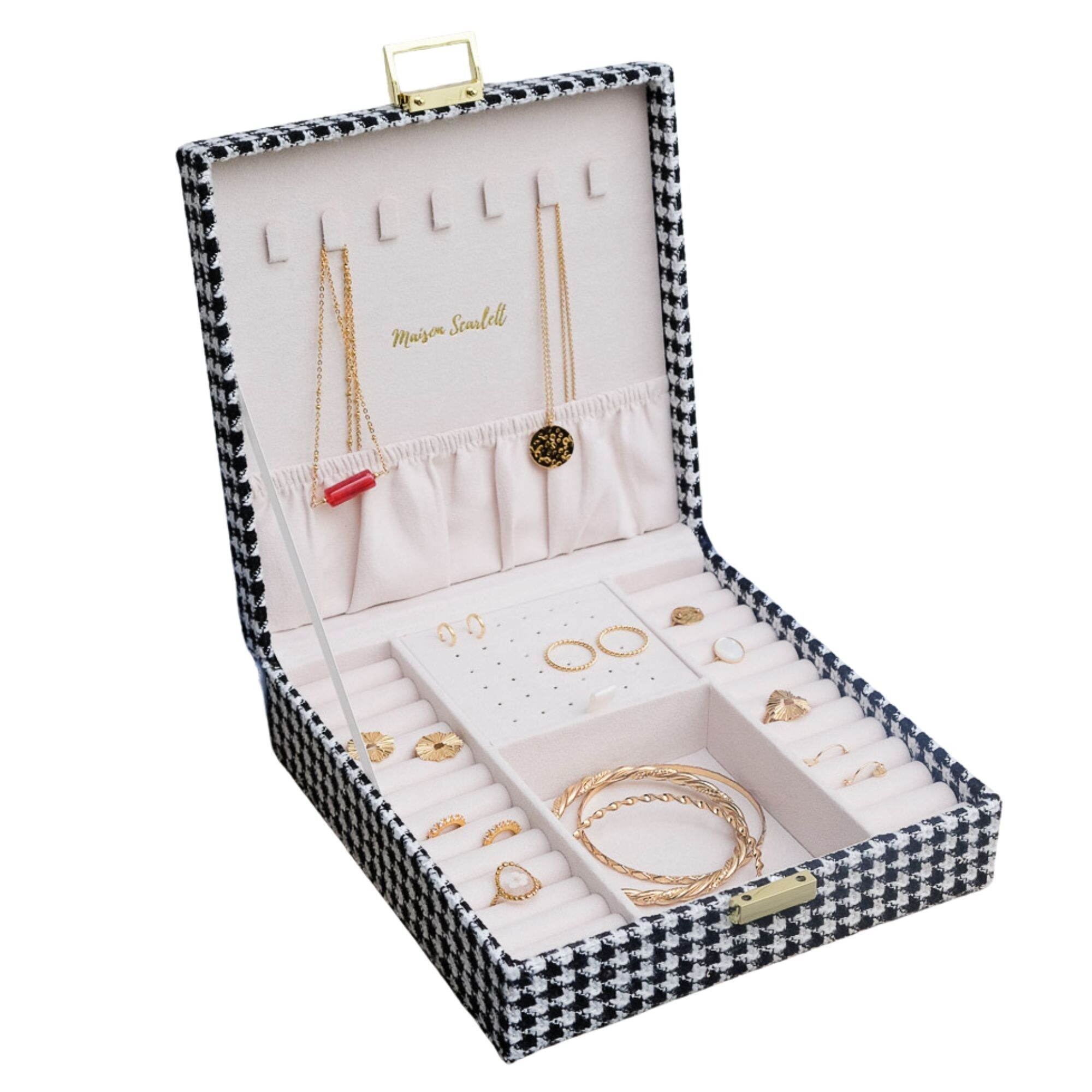 Boîte à bijoux - ANNE - pied-de-poule noir