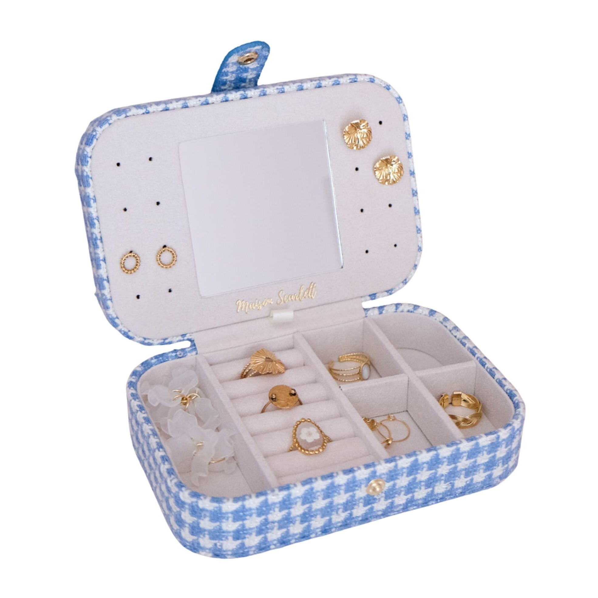 Boîte à bijoux - BRIGITTE - pied-de-poule bleu