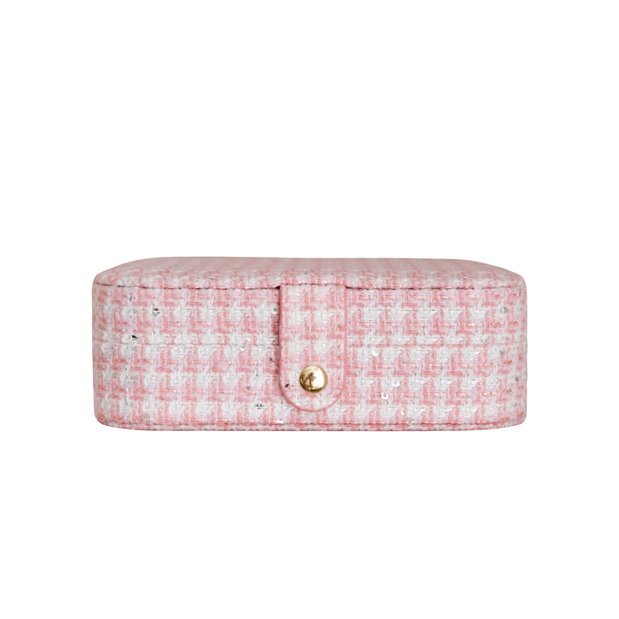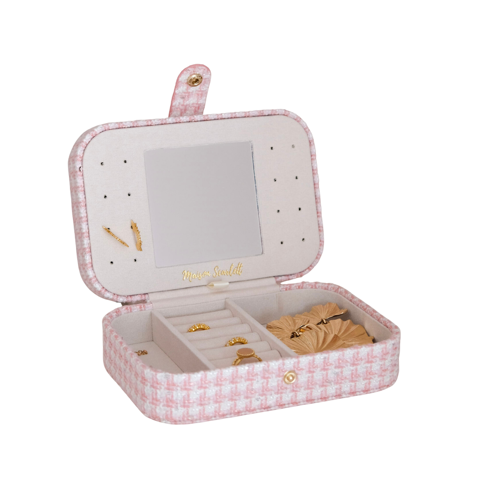 Boîte à bijoux - BRIGITTE - pied-de-poule rose