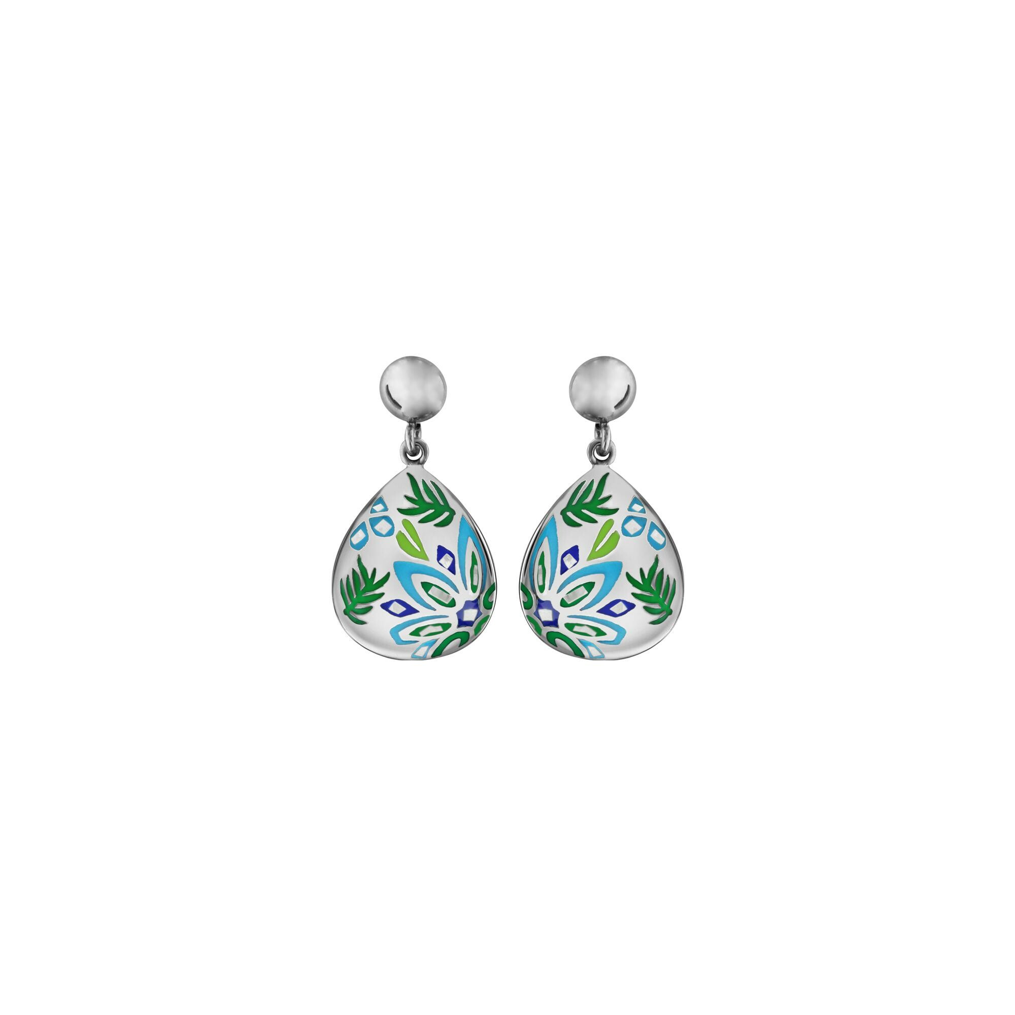 Boucles d'oreilles acier et nacre stella mia forme ovale colibri bleu vert