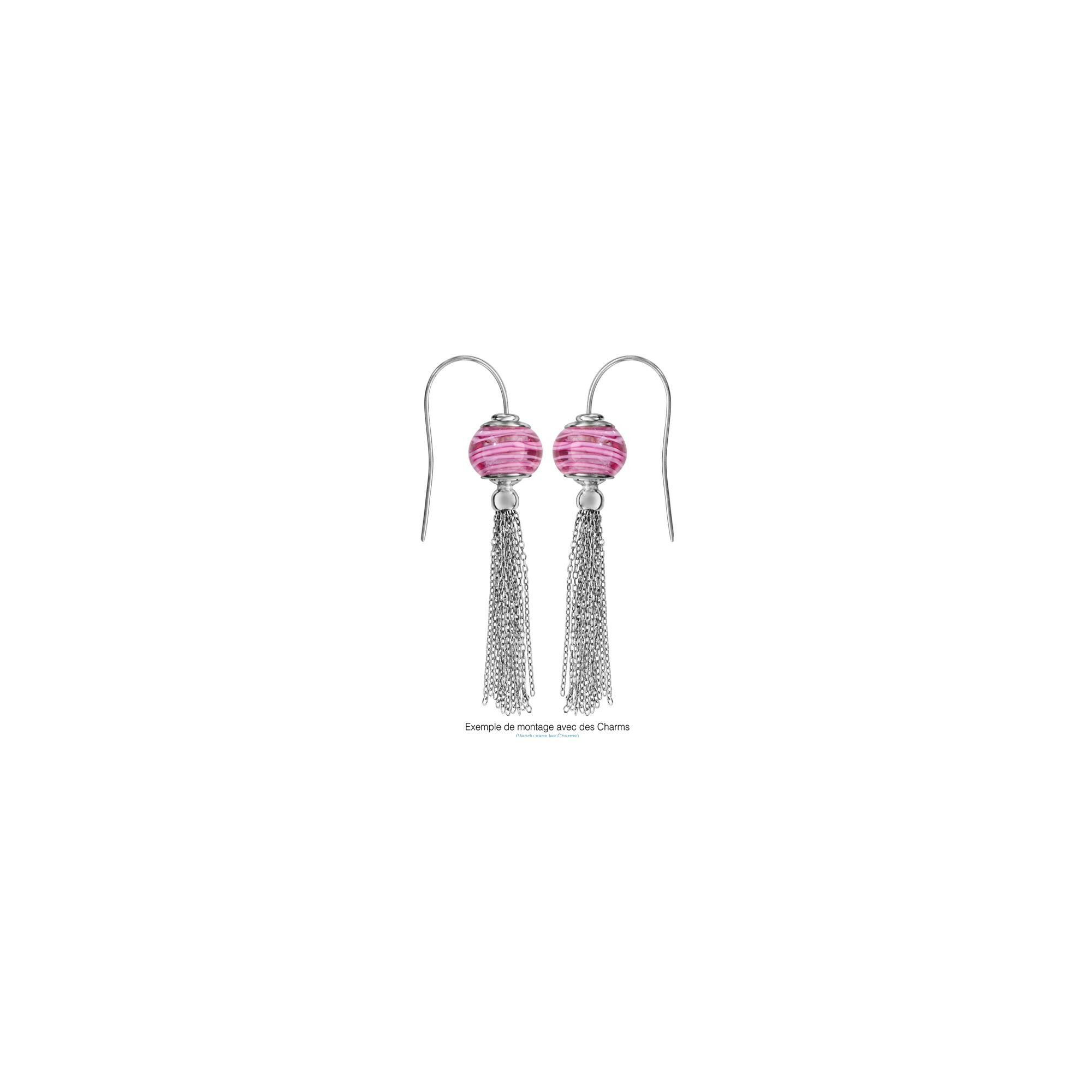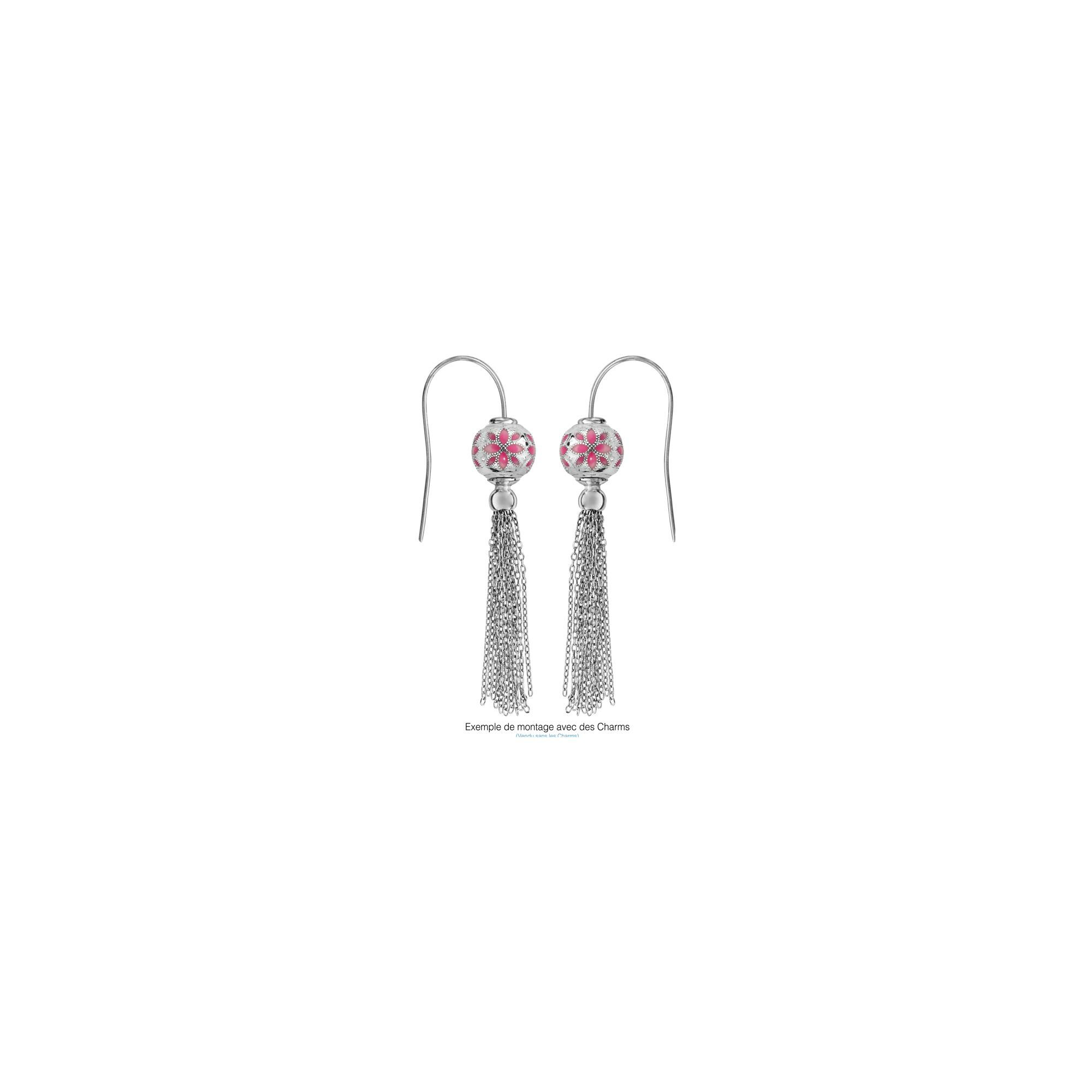 Boucles d'oreilles argent rhodié crochet avec pompon pour coulissant