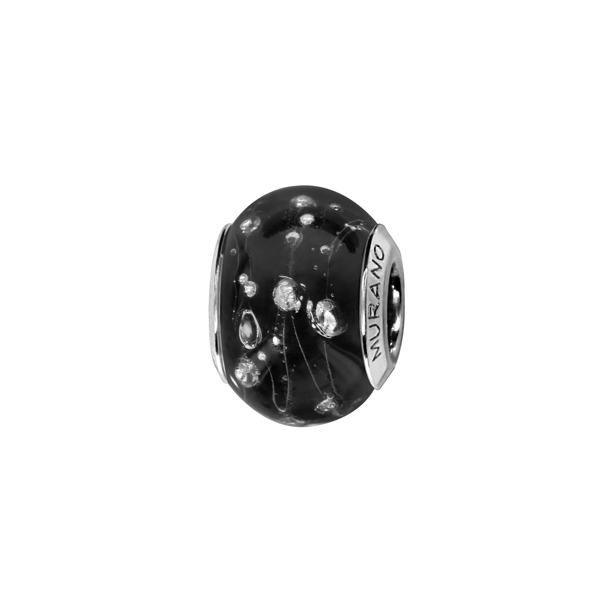 Charms coulissant argent rhodié murano noir avec bulles