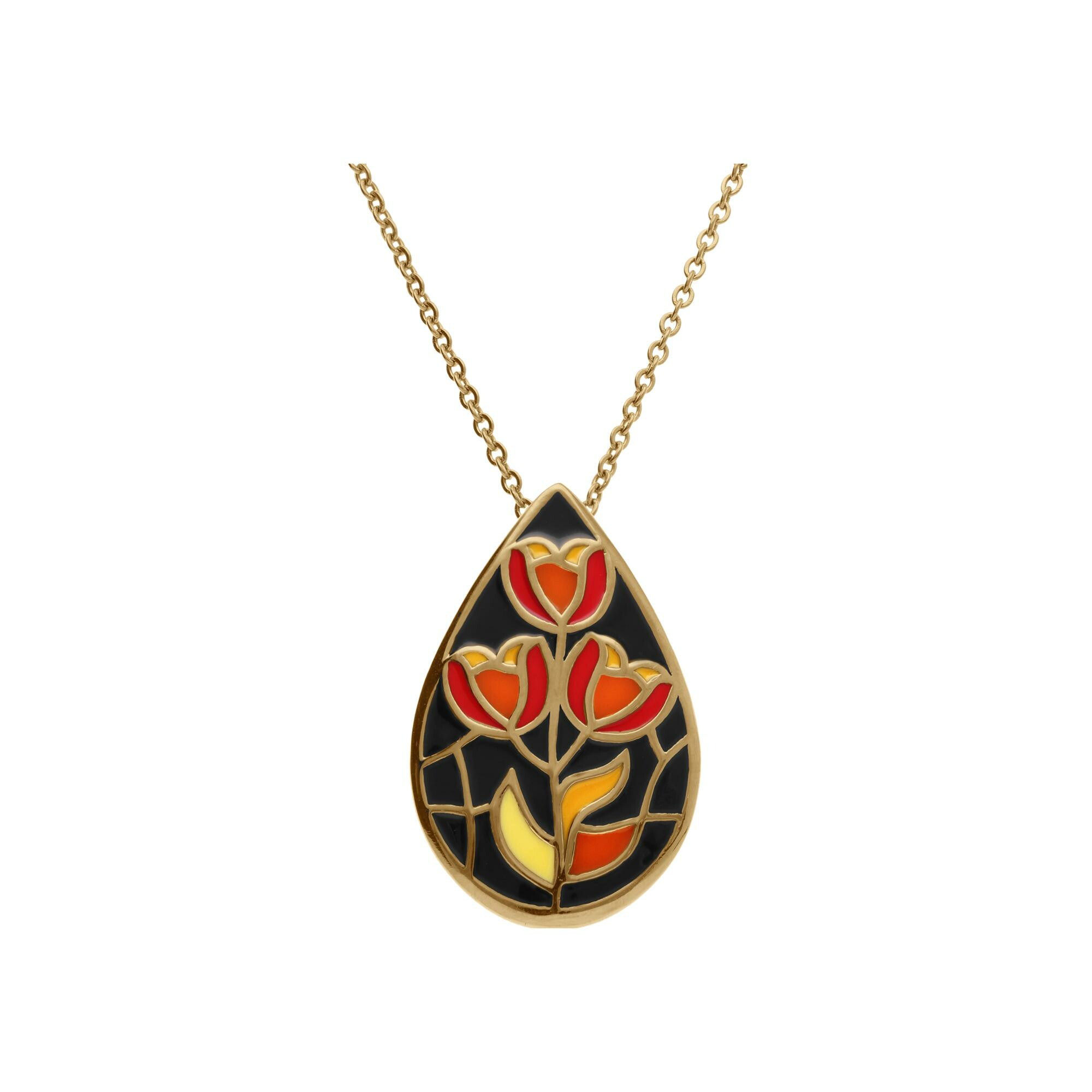 Collier acier doré jaune stella mia forme goutte résine noire et rouge 45+10cm