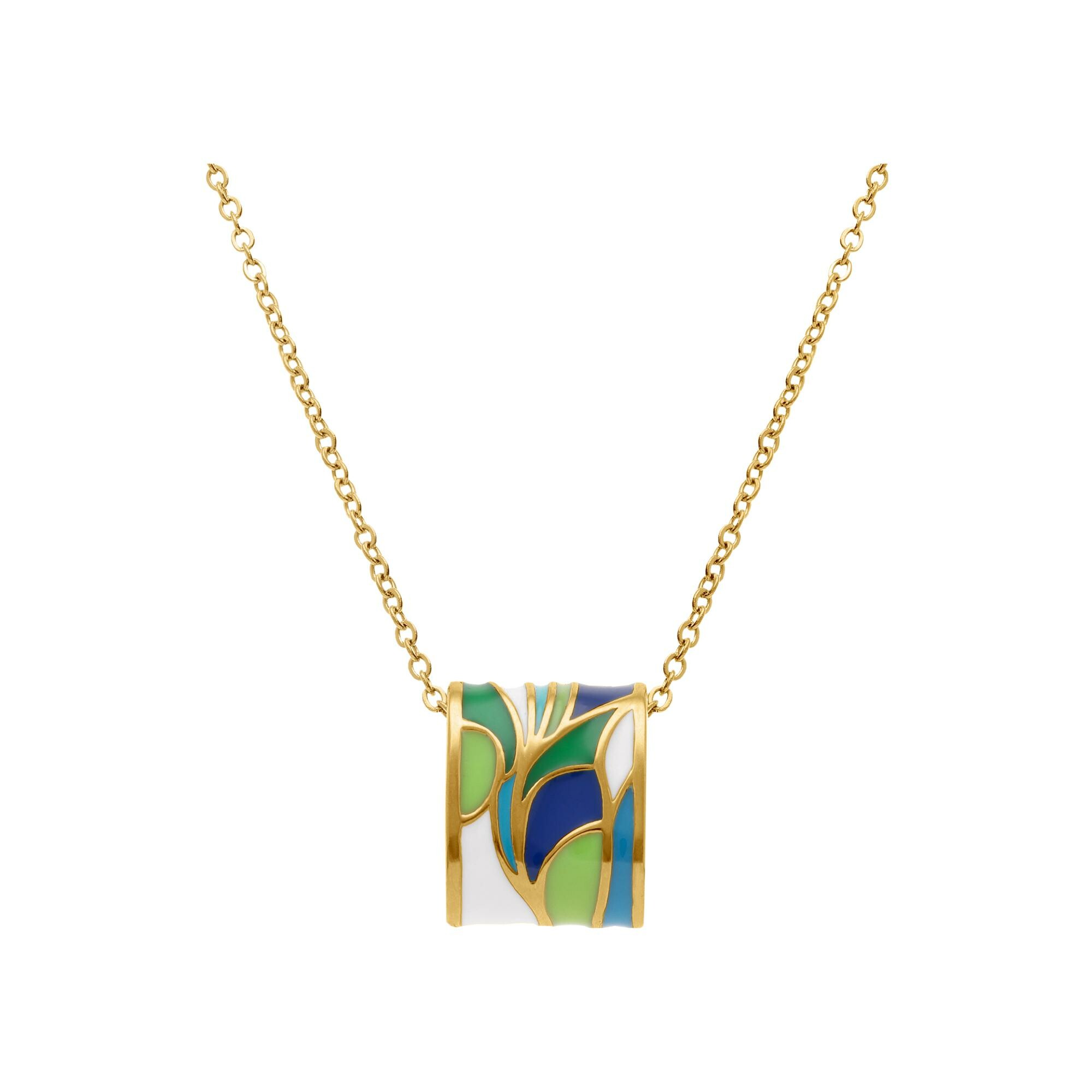 Collier acier doré jaune stella mia rectangulaire résine verte et bleu 45+10cm