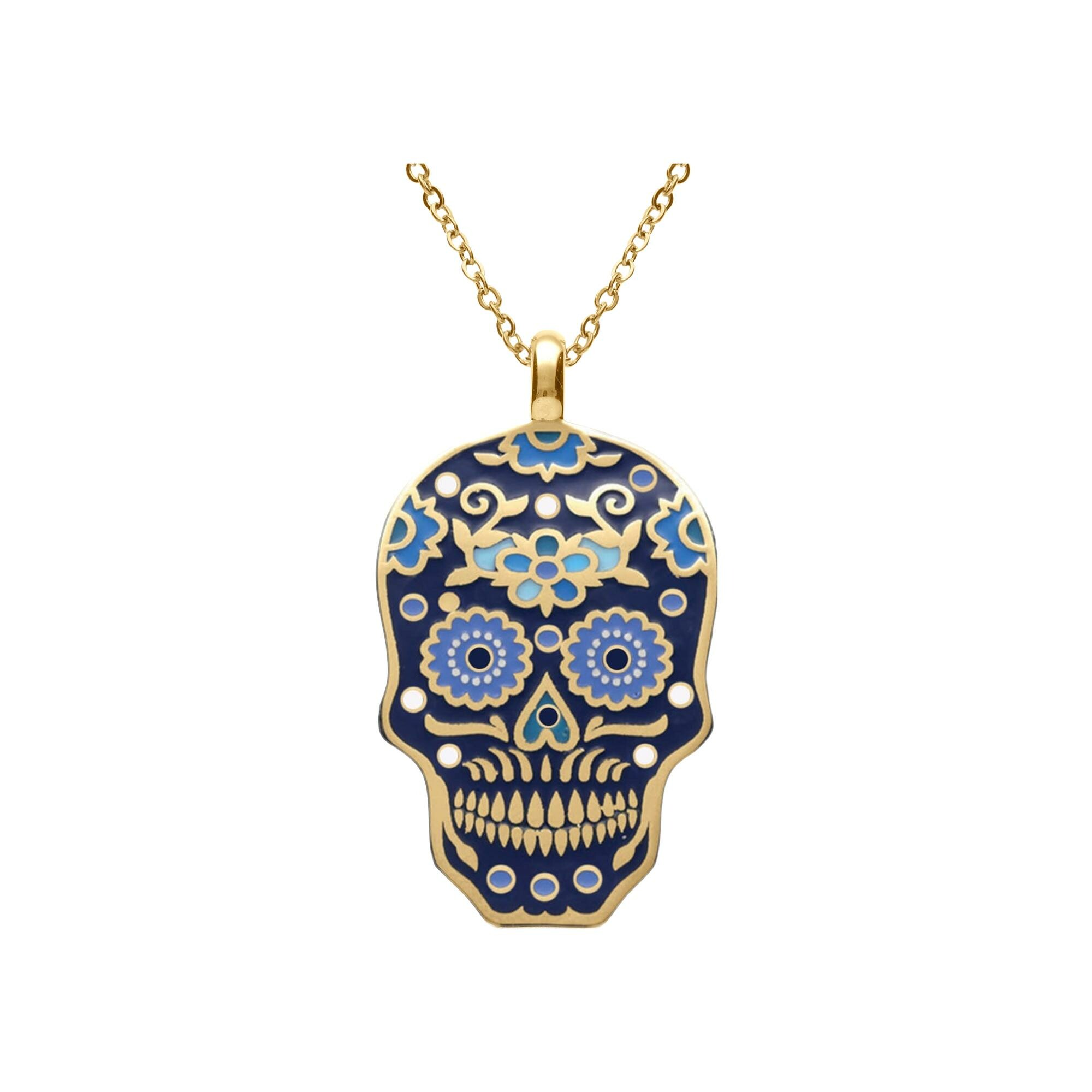 Collier acier doré jaune stella mia tête de mort résine multi couleur 45+10cm