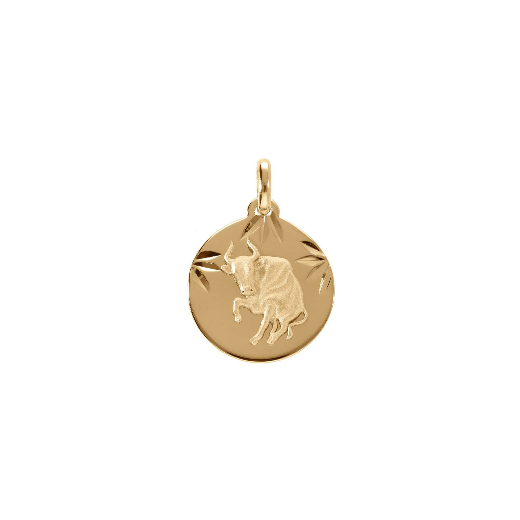 Médaille 15mm diamanté zodiaque Taureau en plaqué or